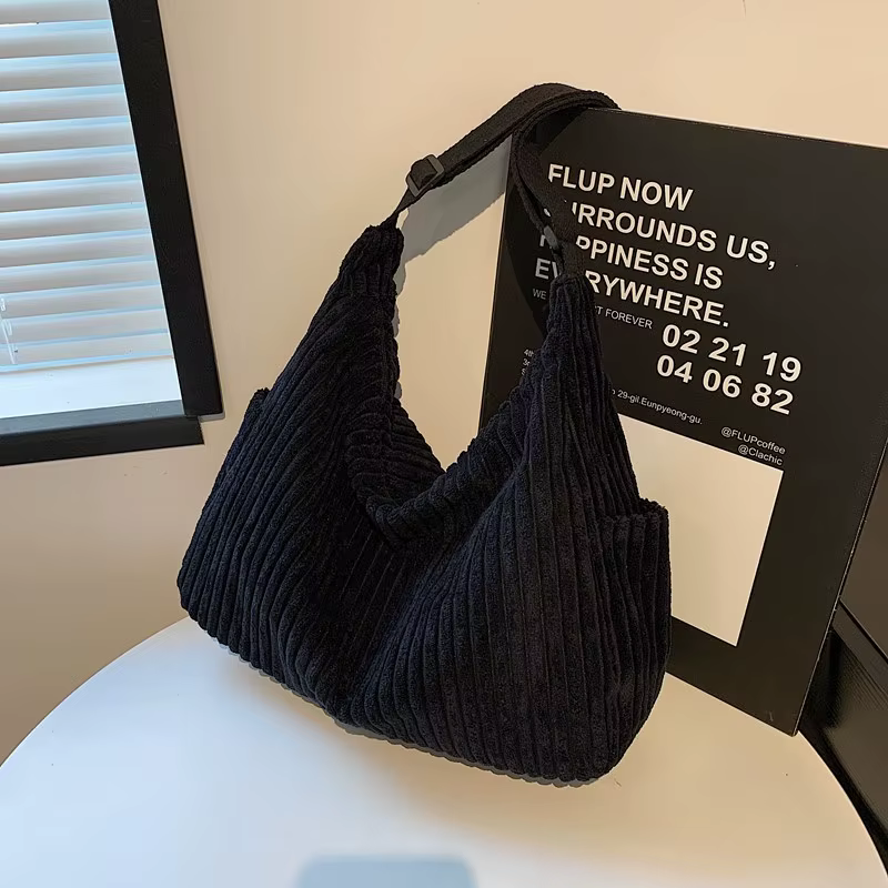 Fashion Leisure Soft Corduroy Solid Color Women's Shoulder Bag Large Capacity Zipper Female Crossbody Bag For Commute Outings