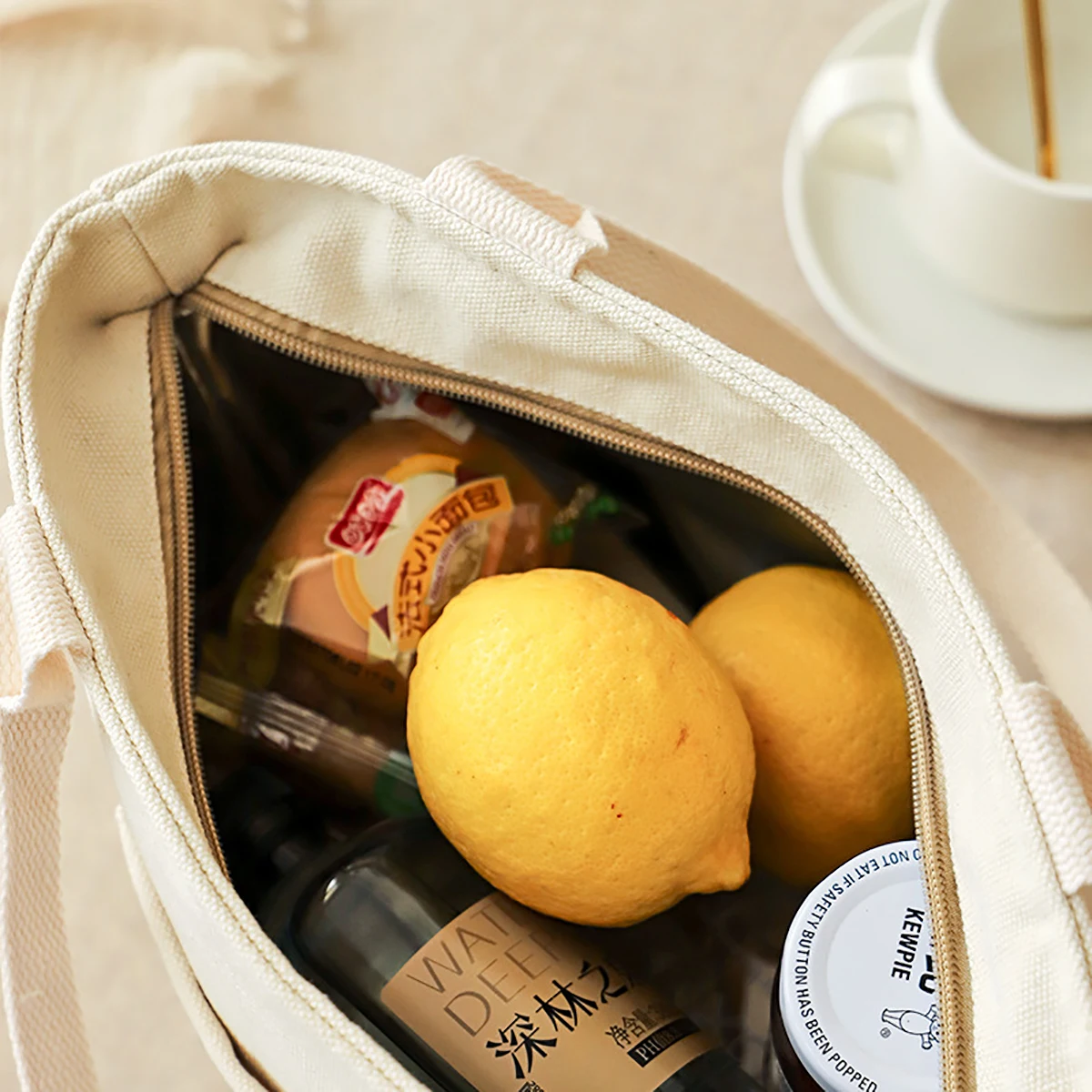 • Versatile Canvas Insulated Lunch Bag with Zipper - Portable Storage Tote for Travel & Picnics, Easy-Clean Square Organizer